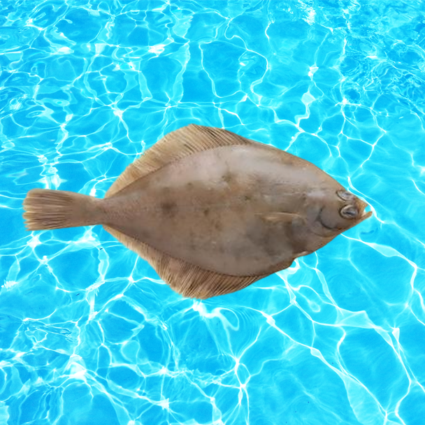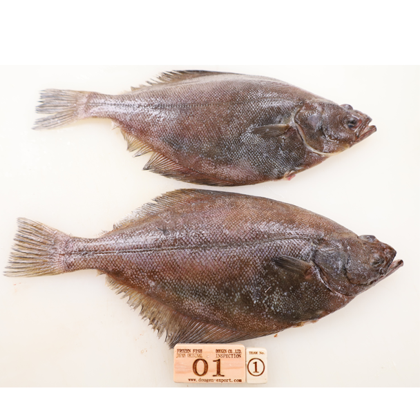 The maximum size of the flatfish is 90-100 cm. The body length is usually about 50-60 cm. It is smooth with small scales. There is a bony ridge behind the eye. The upper side is brown or green-brown with irregularly distributed bright red or orange spots. Some may also have smaller white spots, especially when living in places where there are white shells or pebbles in the sediment. The underside is white. The lateral line is straight and slightly curved above the pectoral fin. The dorsal fin reaches to the eye. More than 30 vertebrae. The mouth is small with rows of teeth, often molar-shaped, with the upper jaw almost touching the lower eye and the chin protruding. The fins have no spines.