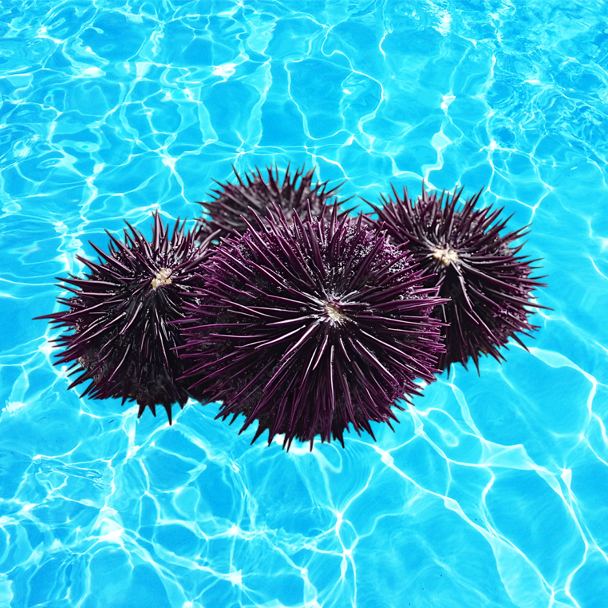 Sea urchins are echinoderms belonging to the class Echinoidea, widely distributed in shallow coastal waters around the world, especially in regions such as Japan, Korea, the Mediterranean, and the North Pacific. Their round shells are covered in sharp spines, giving them a distinctive appearance. Sea urchins typically inhabit rocky crevices or seaweed beds, feeding on algae and microscopic organisms.